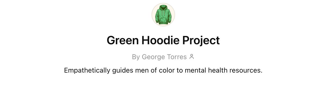 If you subscribe to ChatGPT - Try my experimental Men’s Mental Health App The Green Hoodie Project by clicking here. If you try it, I would love to get your feedback.