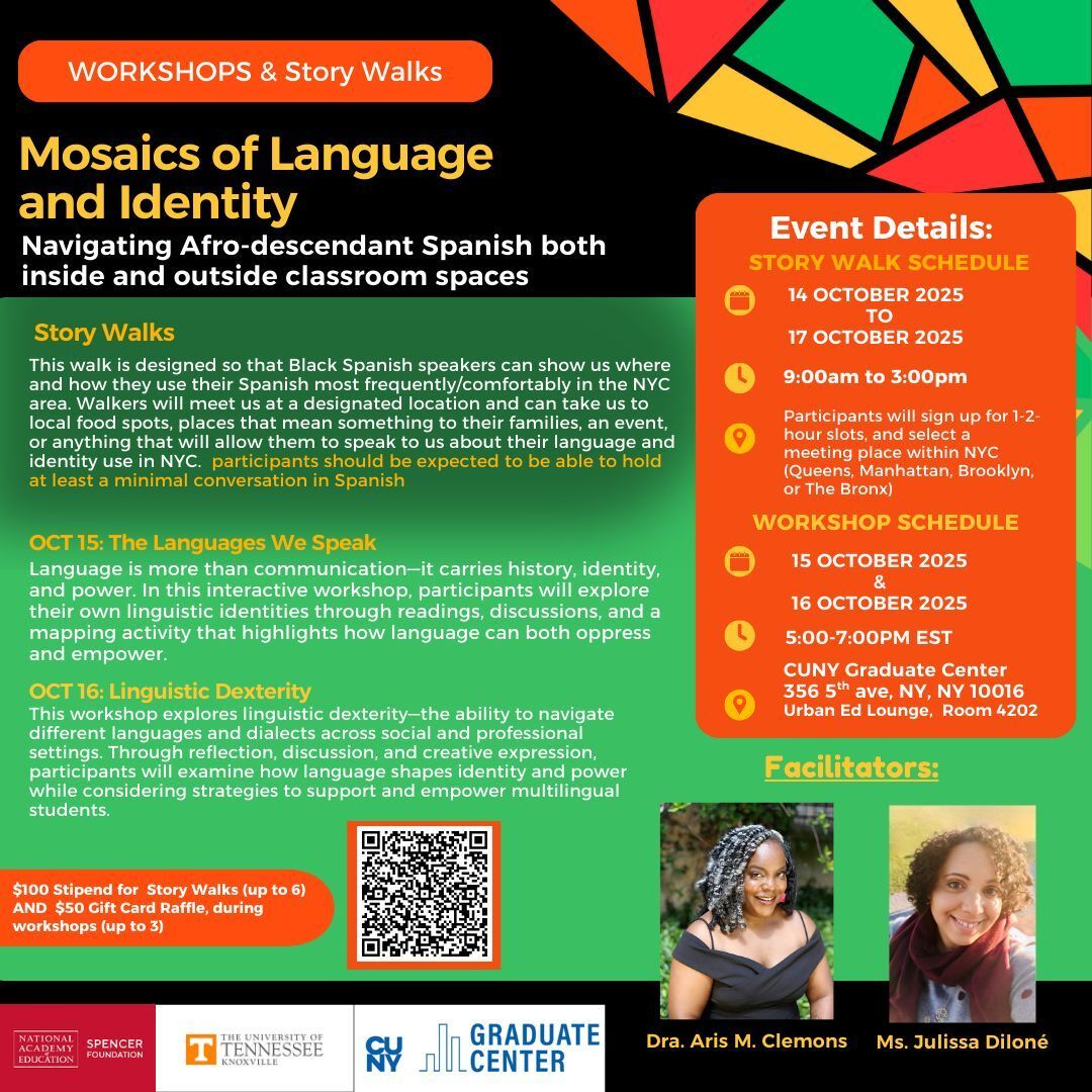 Join Julissa Dilone and Dra. Aris M. Clemons this October in NYC for a unique series of Story Walks and Workshops exploring Afro-descendant Spanish, identity, and power inside and outside the classroom.